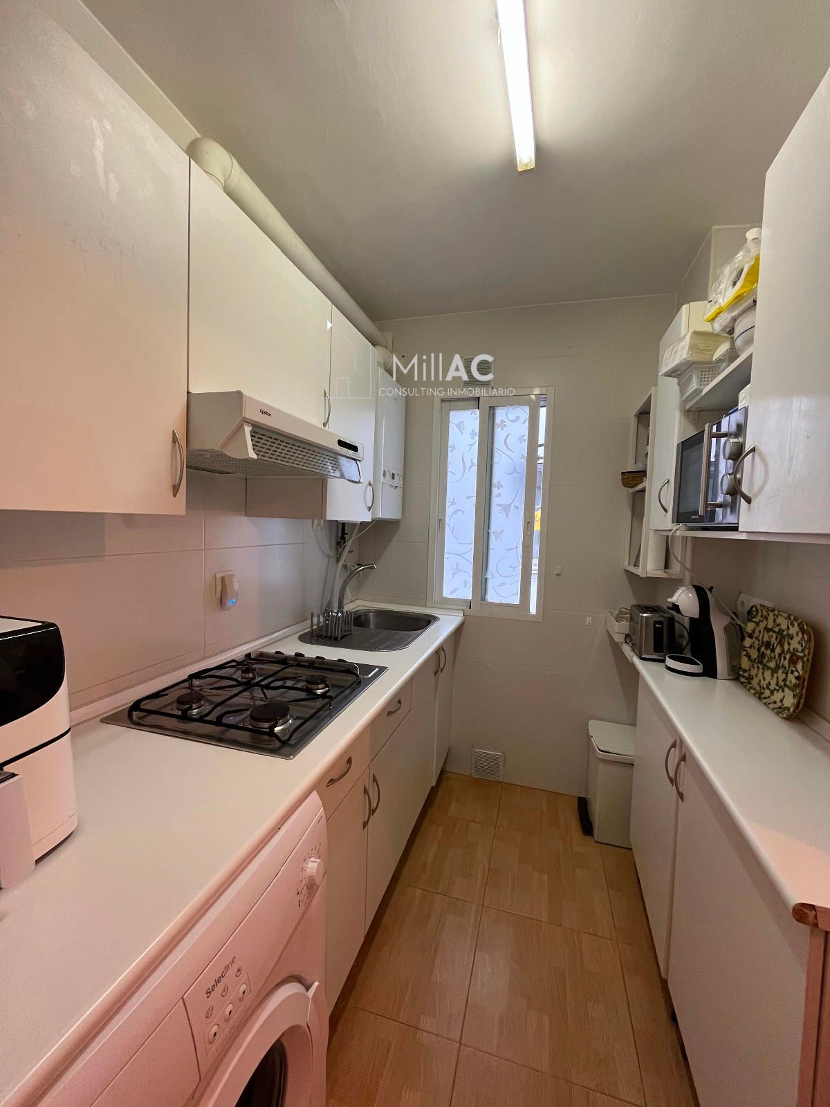 La vivienda disfruta de una magnífica orientación sureste que garantiza una entrada de luz natural y una agradable sensación de amplitud durante todo el día. Originalmente distribuida en dos amplios dormitorios, baño completo, salón con terraza incorporada y cocina amueblada, fue reformada hace menos de cuatro años para ofrecer un espacio más moderno y funcional. Actualmente dispone de un gran dormitorio principal y un salón ampliado al integrar el segundo dormitorio, consiguiendo una estancia mucho más espaciosa y luminosa. El baño también fue ampliado, incorporando un fantástico armario de 3,50m de largo, de gran capacidad con más de 80 cm de profundidad, aportando comodidad y almacenamiento extra.
